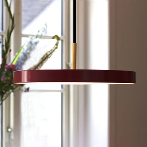 Choose between the Asteria Pendant, with a diameter of 43 centimeters and the Asteria Mini Pendant, with a diameter of 31 centimeters. Ideal above the dining table or kitchen counter, the mini version in particular looks great in sets of two. The pendant's simple and sleek appearance is a perfect combination of craftsmanship, technology and design. Thanks to the specially designed LED panel and slim design, the Asteria Pendant is a lamp that will never go out of style. Choose from a wide range of beautiful colors to match your personal style. The pendant comes with a brass detail that can easily be changed to steel or black as trends come and go.