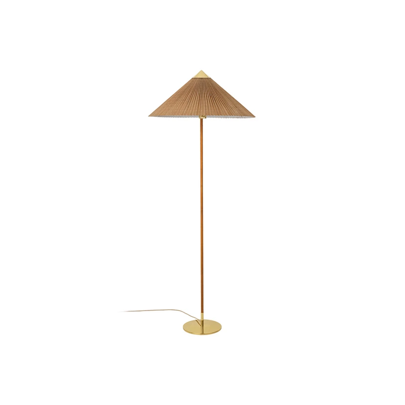 The floor lamp, nicknamed the "Chinese hat" due to its flat cone shape, was conceptualised by Finnish designer Paavo Tynell in 1938 for the Aulanko Hotel in Finland. The open, wide lampshade ensures a diffused glow from the light source behind it, giving the 9602 Floor lamp an efficient and decorative light source to complement the overall lighting in the room.