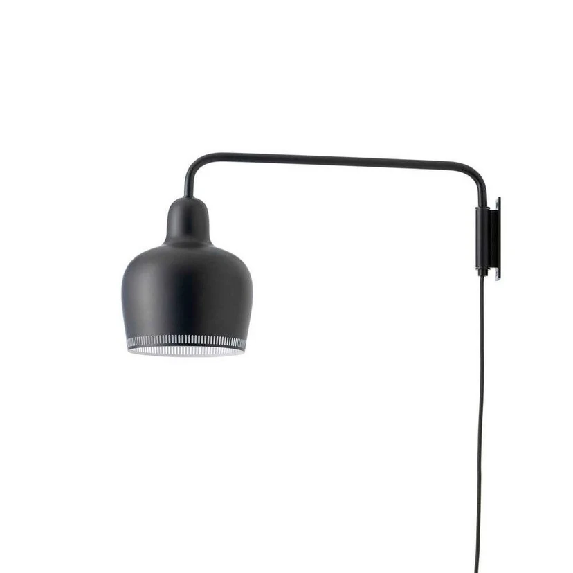 A330S Golden Bell Wall Lamp Black/White was originally designed in 1937, when the architect Alvar Aalto and his wife decorated The Savoy Restaurant in Helsinki, Finland. Eighty years later, the brass pendant still holds its own in the elegant restaurant.