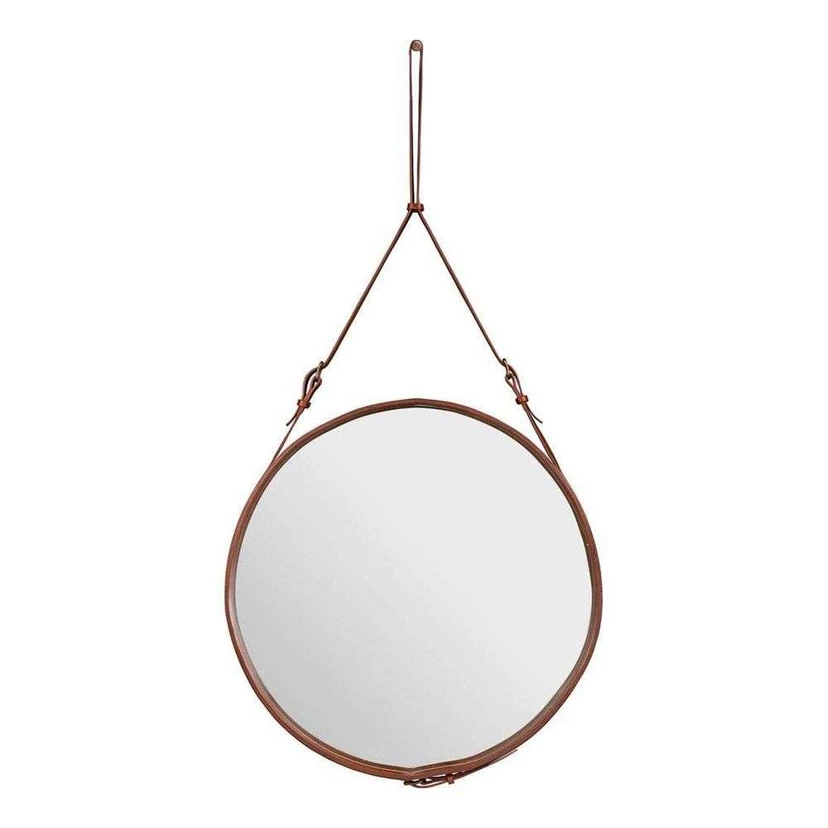 Adnet Wall Mirror Circular Ø70 Tan Leather was designed by Jacques Adnet who embarked on a collaboration with a famous French fashion house back in 1950. He developed a collection of discreet yet voluminous leather-covered pieces of furniture and home accessories. Adnet was known for being an innovative thinker, and he was one of the first designers to combine leather and glass. This was the inspiration behind the popular Adnet Circular Mirror.