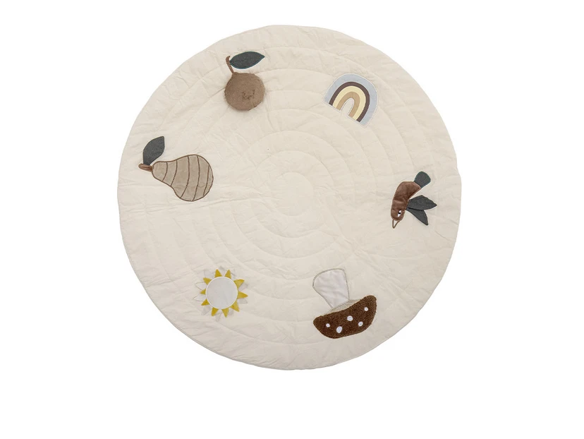 The Agnes Play Mat White from Bloomingville is the perfect play mat for your child. This charming rug is designed with cute characters that invite play and exploration. The orange on the mat makes a nice little sound when pressed and the leaves on the light bulb crackle when touched. There are several soft surfaces that are nice for the child to touch, stimulating the senses. The play rug is made of cotton and comes in muted colours to match any room in the home. It's not only a practical addition to the nursery, but also a stylish detail that can be used in the living room or wherever your child plays. The Agnes play rug is also an ideal gift for new parents who want to give their child a safe and stimulating playground.