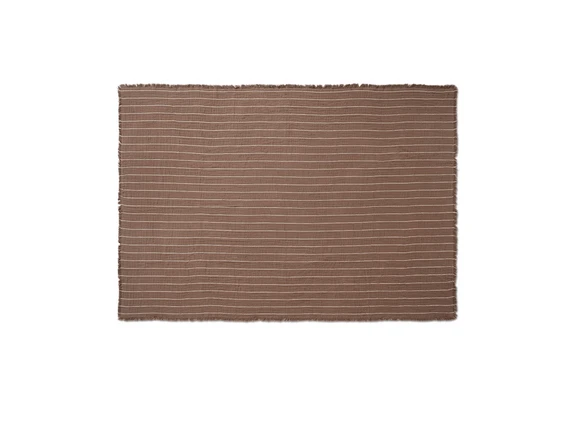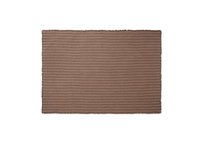 The Aires Bedspread Single Stone from Ferm Living is the perfect choice for those who want to add a touch of elegance and comfort to their home. Made from 100% GOTS certified organic cotton, this bedspread offers a sustainable and luxurious experience. The beautiful shade of brown blends perfectly into any decor, while the unique double weave technique creates a subtly wrinkled and irregular surface texture that adds depth and character. The soft, airy touch combined with the warmth of the double-layered weave makes it ideal for both the bedroom and living room. The finely woven contrast stripes and elegant fringe edges add an extra dimension of visual interest. Use the Aires bedspread as a stylish throw on your bed or drape it over the sofa to create an inviting atmosphere. Explore the entire Aires range to find more matching products to complete your interior design.