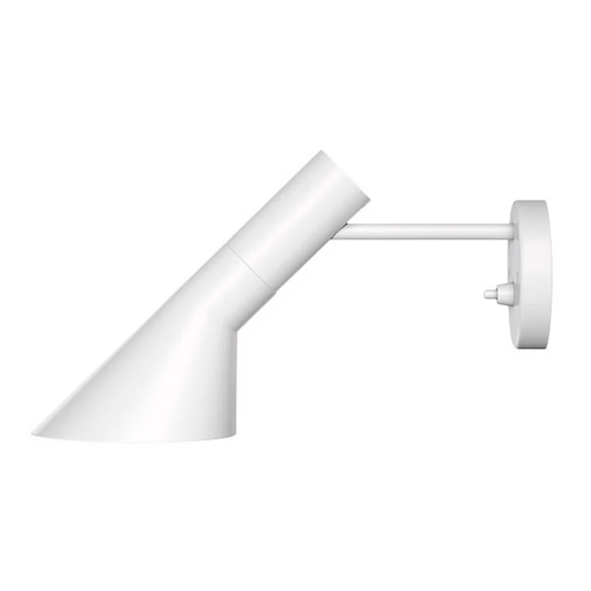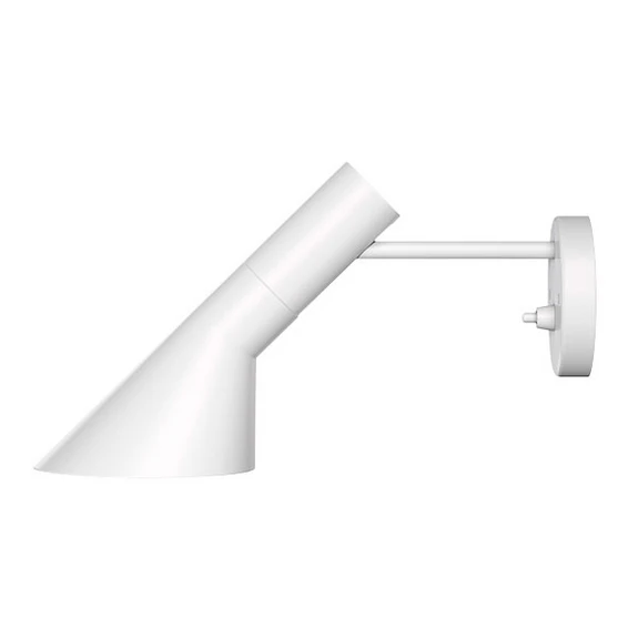 The AJ wall lamp in white is equipped with a fixture head with a characteristic asymmetric shape, which is essential to the fixture’s light qualities. The fixture head on the AJ wall lamp can be tilted and turned 60 degrees from side-to-side. With its unique look, the lamp is a modern classic.