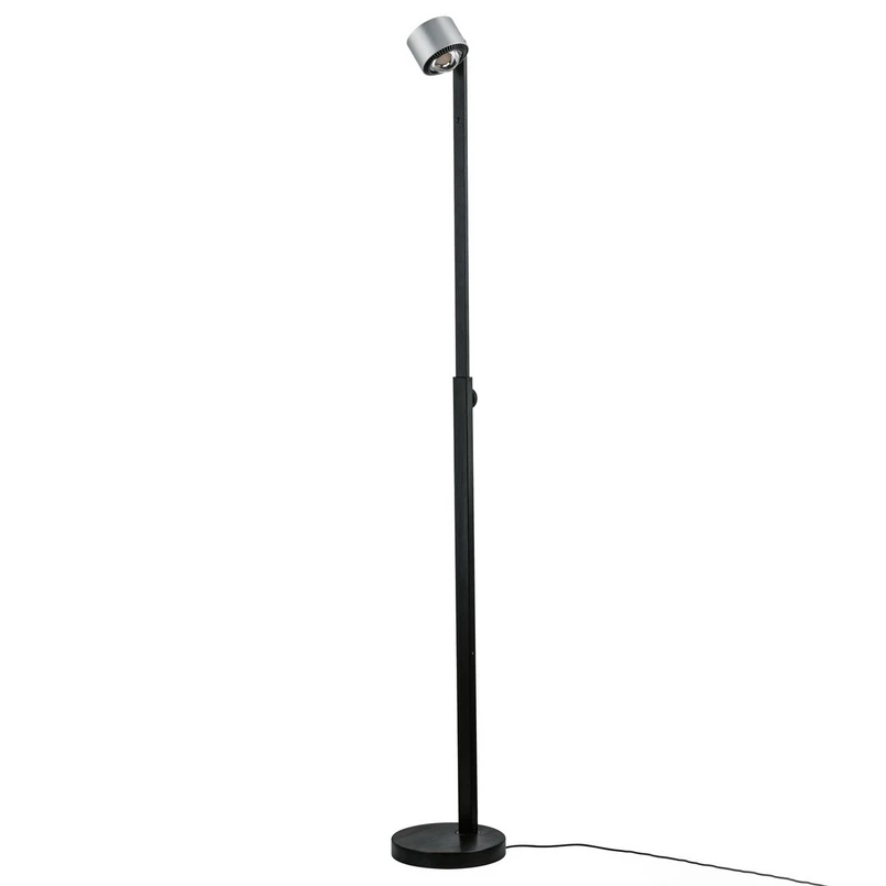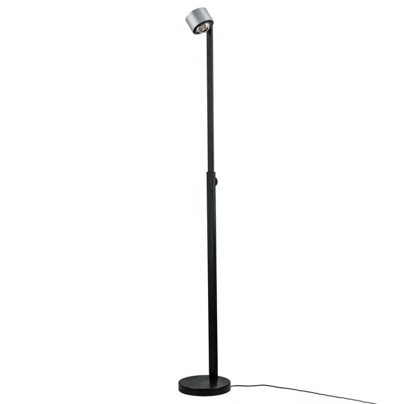 Aldan Floor Lamp Dim. Black/Brushed Alu is a beautiful modern lighting series with a clear and concise lighting concept. The range, which includes table, floor and pendant lights with one or more light sources, all have the same contemporary colour scheme in black and aluminium with the same simple design. The cylindrical shape of the lamp head allows the light from the built-in LED light source to shine out in an efficient and direct beam.