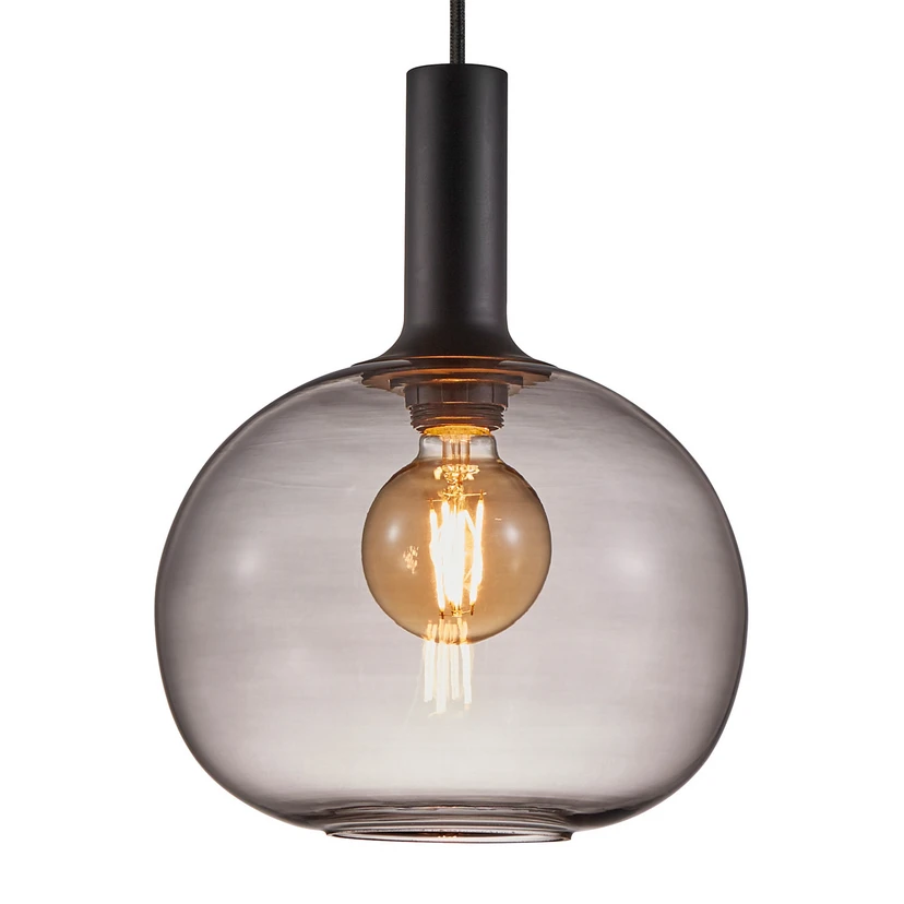 The Alton 25 Pendant Lamp Smoke is a masterpiece of design art to delight and benefit the home interior. The lamp is innovatively designed with a transparent glass shade in a fascinating smoke-coloured shade that prevents the light from dazzling, instead creating a diffuse and cosy light emission. When the lamp is switched on, the light source becomes partially visible. We therefore recommend choosing a filament bulb or another decorative model that supports the stylish designer look.