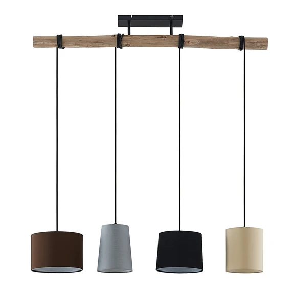Amilia 4 Pendant Black/Grey/Beige presents itself in a lively and playful design with a colourful radiance. The lamp catches the eye with its beautiful, multi-coloured lampshades in different sizes, making the design less boring and making a bigger impression. The kitschy combination of different lampshades also gives the room a relaxed feel, perfect for any interior where a homely atmosphere is desired.