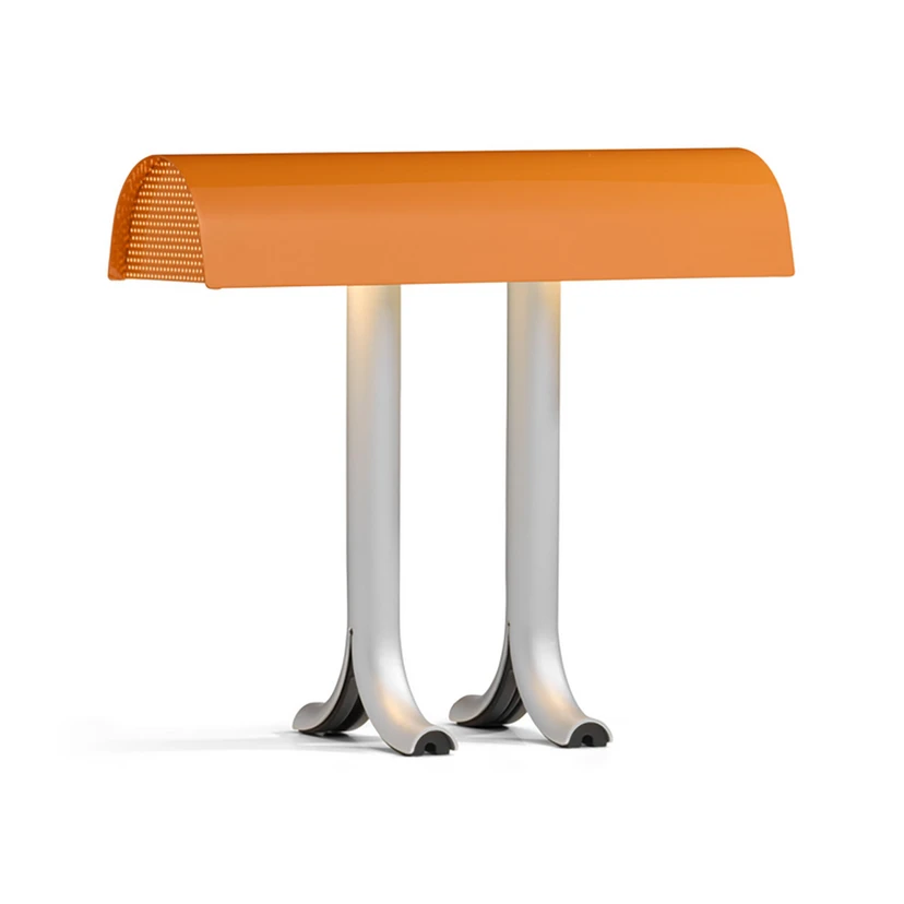 The Anagram Table Lamp Charred Orange is a whimsical and functional design that adds edge and character to any interior. Anagram combines a strong personality with a robust construction, inspired by the shapes of the Barbican centre in London. The designer was also inspired by the idea of creating a nostalgic yet functional lamp, where the juxtaposition of perforated and non-perforated steel led him to explore different plays of light. The result is this unique table lamp, which consists of a curved, glazed lampshade resting on two anodised aluminium legs. The lampshade is available in several different colours, each of which contributes positively to the overall aesthetic of the lamp. The table lamp has a downward, ambient light that works particularly well on a desk, windowsill or side table, where it serves as both a practical and decorative decor element.