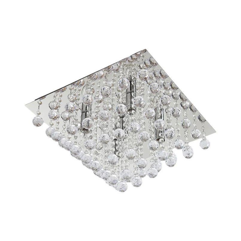 Annica Square Ceiling Lamp Chrome/Clear is a gorgeous modern take on the traditional chandelier. The central light sources are surrounding by a glittering sea of finely cut acrylic surfaces that reflect and are endlessly reflected in on another as well as in the glossy ceiling element. When the light is on, the expression is nothing short of magical, and the lamp has a glorious air of glamour.