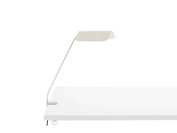 Apex Desk Clamp Light Oyster White is a quirky lighting collection from British designer John Tree. The range, which includes several different types of clamp lights and table lamps, is inspired by the classic bench lamp. Like its role model, Apex has a roof-shaped lampshade with a glossy finish and can be swivelled to adjust the direction of the light. In this modern reinterpretation, the lampshade can be rotated a full 360 degrees for unprecedented flexibility.