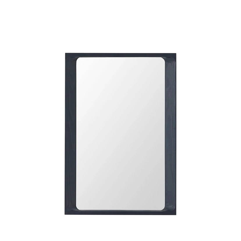 The Arced Mirror 80X55 Midnight Blue by Muuto is an elegant and versatile mirror that adds a touch of modern design to your home. Made from FSC™-certified spruce wood, this mirror combines traditional wooden mirror style with a modern aesthetic. The subtle frame recess gives the mirror a charming window-like appeal that emphasises the natural character and grain of the wood. The midnight blue colour is one of five available shades, each offering a unique and distinct look. The mirror is treated with a wood stain colour and finished with a clear matte lacquer, ensuring a durable and beautiful surface. With its versatile sizes, this mirror fits perfectly into any room, whether it's the hallway, living room or bedroom. Give your home a stylish lift with this beautiful mirror from Muuto.