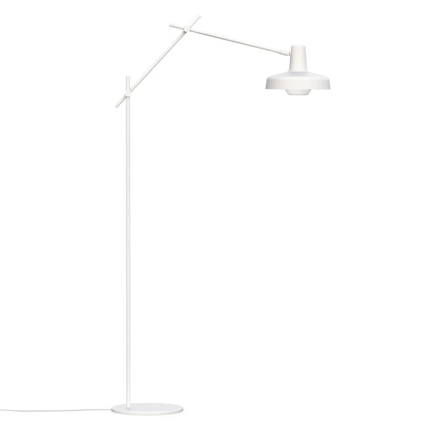 The Arigato Floor Lamp in White is a striking fixture in steel and aluminium. Both the arm and the head of the lamp are adjustable, enabling you to direct the light whichever way you please. This is a functional lamp that is well-suited for use around the home.