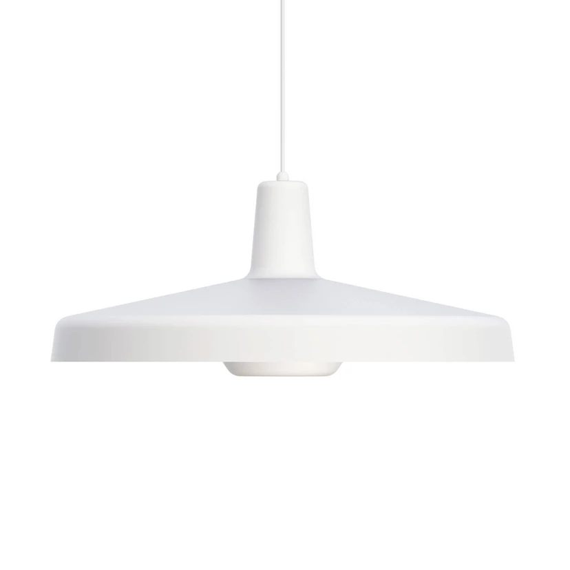 Arigato Pendant Light Large White is created in a combination of steel and aluminium, with a white inner side in the lampshade that diffuses the light of the lamp. The product is hand-assembled, and when you touch the lamp, you can clearly feel the high quality and love that Grupa puts into each and every lamp.