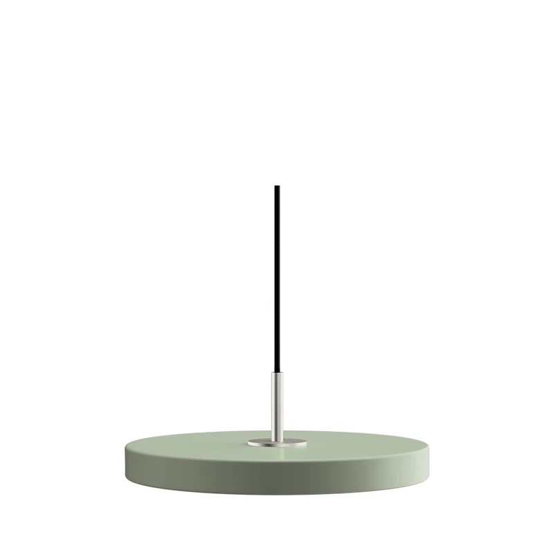 The Asteria Plus Pendant Light Mini Nuance Olive/Steel Top from UMAGE is the perfect combination of style and functionality for your home. Made from steel, aluminium and acrylic, this pendant light brings a modern elegance to any room with its green and silver finish. Asteria Plus is designed to meet your lighting needs with a built-in dimmer that makes it easy to adjust the light temperature. This makes it ideal for both workspaces and cosy moments in the dining room or kitchen. The minimalist aesthetics and soft LED light create a cosy atmosphere, while the possibility of mounting on tracks adds extra flexibility. With interchangeable tops in brass, steel or black, you can customise the lamp to your personal style. Whether you want discreet lighting or an eye-catching lamp, Asteria Plus is a versatile choice..