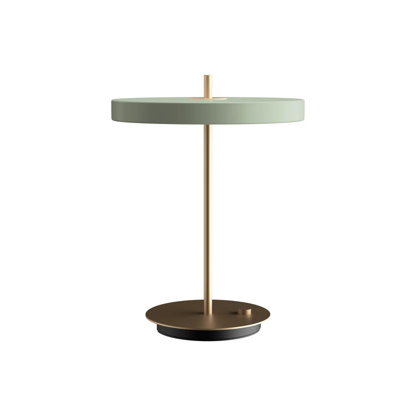 Asteria Table Lamp Nuance Olive is a beautiful, slim and minimalistic lamp. UMAGE has done it again and designed a beautiful lamp with attention to design, technology and craftsmanship. The central brass tube, which runs through the lampshade as a vertical axis, gives the lamp a tight and exclusive look.