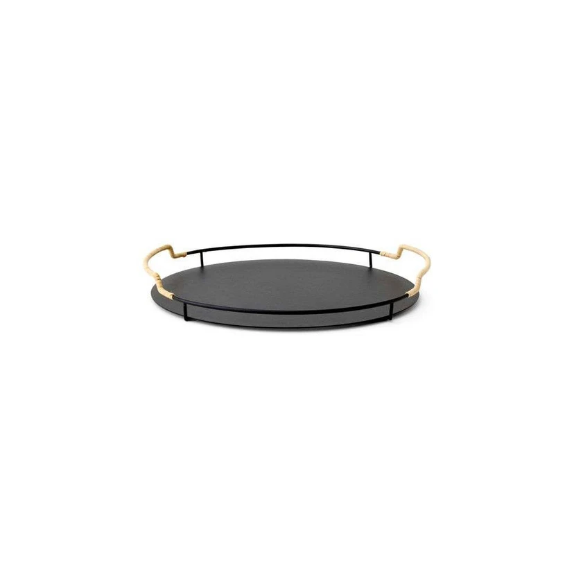 The smart tray consists of a flat plate and a thin, elegant metal bar that acts as a rack for your glasses, drinks, coffee cups and candy bowls. On each side of the tray, the slender shape curves upwards to form handles that are covered with a thin thread of non-slip textile.