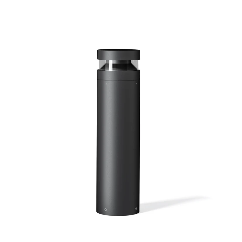 Baldur Outdoor Bollard IP65 Black presents itself in a versatile design that is designed to fit into any space, be it private or public. The lamp has a simple and holistic cylindrical body of die-cast aluminium with a matte black surface that easily blends into its surroundings. The lamp head is made of durable polycarbonate in a transparent quality, allowing the light to flow directly into the surroundings in a clear and efficient glow. The transparent covers dominate all sides of the lamp, spreading the light out in a uniform ring. However, if you want unidirectional lighting, you can also purchase a cover that shields the back. You can find the cover