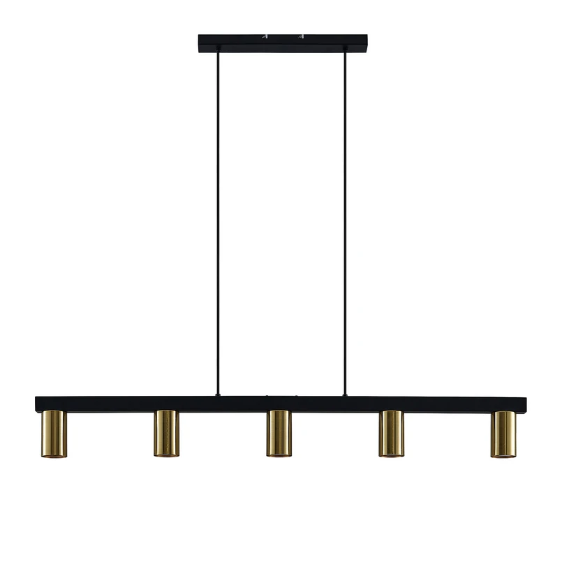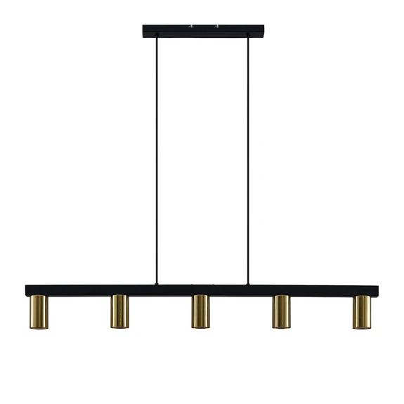 Baliko 5 Pendant Black/Brass is the ideal light source for those who prefer modern design with symmetry, simplicity and clean lines. The lamp is a balanced construction consisting of a rectangular ceiling bracket, straight, matching cable cords and a crossbar where the five cylindrical lampshades are evenly distributed. The whole has a sense of calm and balance that, with its clean, geometric shapes and neutral colour scheme, makes Baliko a great addition to modern and minimalist interiors.
