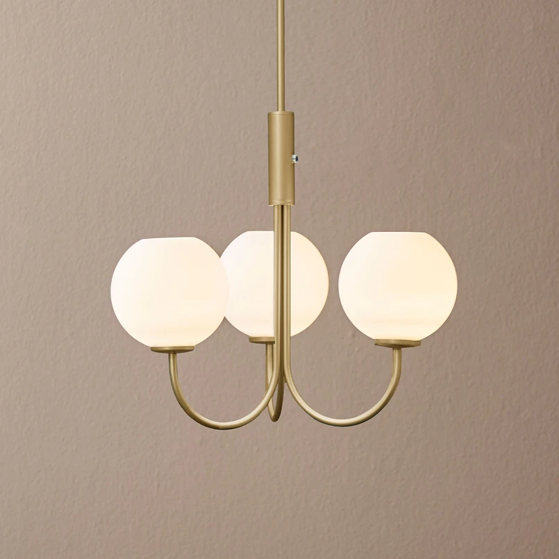 All Ballon lamps are characterised by their spherical, pearly white glass shades that beautifully illuminate and provide pleasant all-round lighting. The matt white surface ensures that large amounts of light can penetrate effortlessly but in a soft and glare-free glow that does not bother the eyes. For this reason, the Ballon wall light and chandelier is perfect for the private home as well as the hotel or sophisticated café.