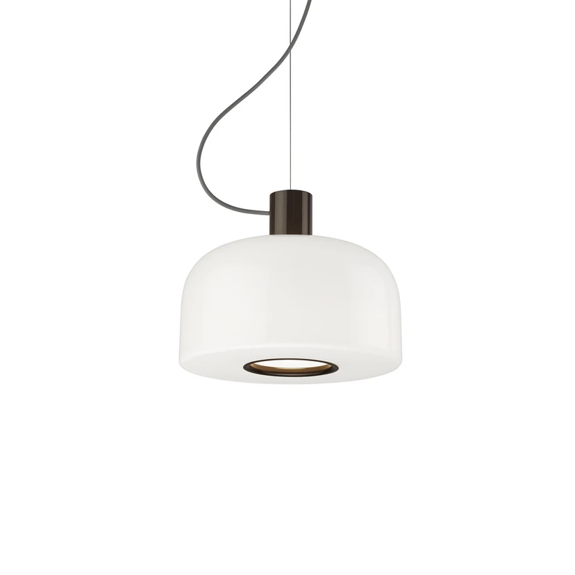 Bellhop Glas S1 Cioko Pendant Light by Flos is an elegant and functional lamp that combines style and functionality. Made from aluminium and glass, this pendant light is designed to provide both ambient and direct lighting. With a height of 18.5 cm and a diameter of 33.0 cm, it fits perfectly above the dining table or in the living room where it creates a cosy atmosphere. The unique construction with an opening at the bottom, protected by an aluminium component, ensures that the light is directed precisely onto the surface without glare. This makes it ideal for both cosy dinners and focused work. The black and white colour palette makes it versatile and easy to integrate into different interior styles. The coloured aluminium ring around the opening adds a modern touch and highlights the design of the lamp. Discover how Bellhop Glas S1 can transform your space with its unique lighting.