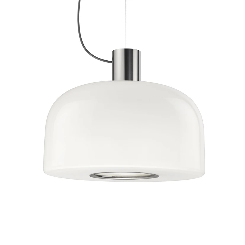 Bellhop Glass S2 Pendant Light Bright Aluminium from Flos is an elegant pendant light that combines functionality with style. This pendant light is made of glass and aluminium, giving it a modern and sophisticated look. With its aluminium and white colour, it fits perfectly into any home, whether you want to create a cosy atmosphere in the living room or a focused task light over the dining table. The design of the lamp ensures that the light is directed directly onto the surface where it is suspended without dazzling those sitting around the table. The smart opening at the bottom, protected by an aluminium component, makes it easy to change the bulb and ensures that the light is not scattered upwards. Bellhop Glass creates an even light distribution that illuminates the room in a pleasant way. Make your home brighter and more inviting with this stylish pendant light.