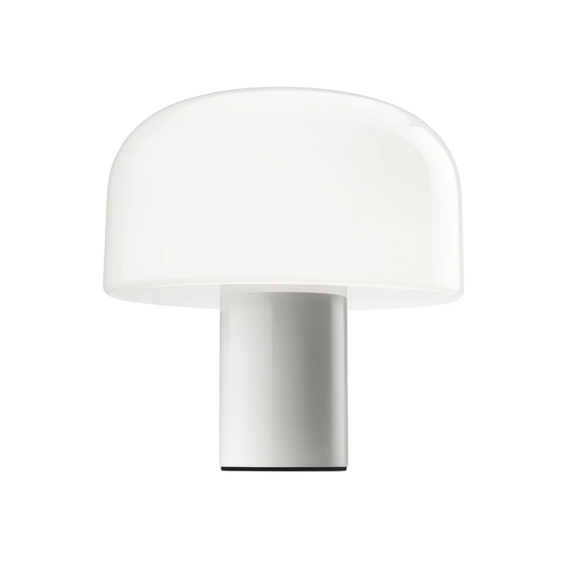 Bellhop Glass T Table Lamp White from Flos is an elegant and modern table lamp that combines style and functionality. This lamp is made of glass and aluminium, giving it a timeless and sophisticated look. The dome of the lamp is made of triplex opal glass, where a white glass layer is embedded between two transparent layers that are blown together. This unique design ensures an even and warm illumination that creates an inviting atmosphere in your home. With a diameter of 33 cm and a base of 12 cm in aluminium, this lamp is perfect for the living room, bedroom or office. It's available in Bright Aluminium, Cioko and White colours, so you can choose the one that best suits your decor. Flos also focuses on sustainability as the materials are recyclable. Make your home brighter and more inviting with this stylish lamp.