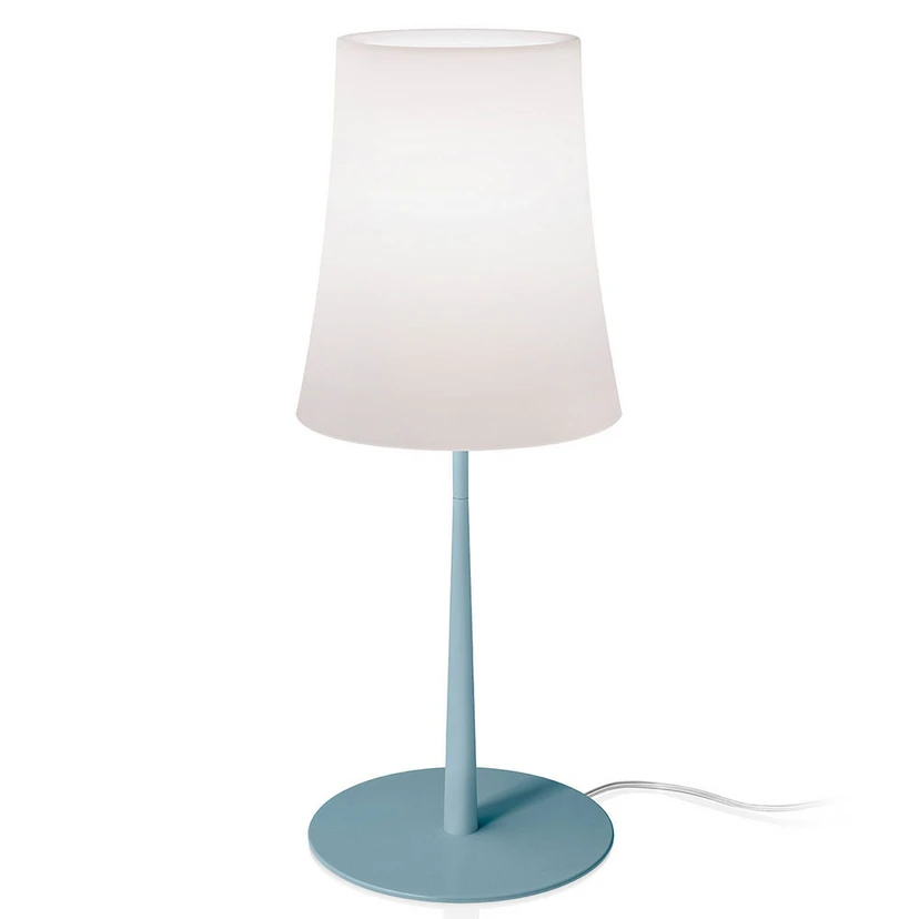 Birdie Easy Grande Table Lamp Light Blue Opal is a fabulous piece of Italian poetry whose confident minimalism gives it extreme adaptability. The gentle and pleasant atmosphere created by the elegant light source adorns modern and classic homes, whether it ends up in the bedroom or the living room. The meeting of the slim and concave body and the elegant curved shade creates a harmonious expression that makes the lamp a piece of art as well as a wonderful light source.