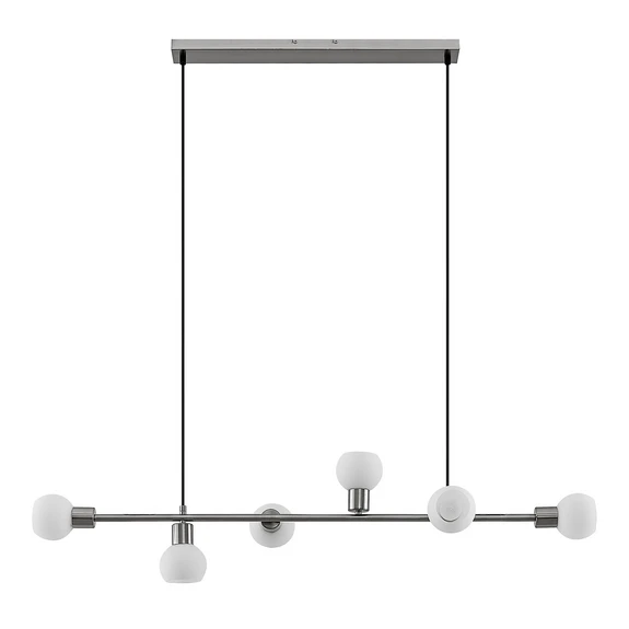 Biscala catches the eye with its distinctive yet elegant and style-orientated design. The many glass shades distributed throughout the frame all have the same beautiful spherical shape, reminiscent of ripe berries. The lampshades are sufficiently dispersed to provide good light distribution in the room. This lamp model comes with LED light bulbs that utilise the power optimally and boast a long service life.