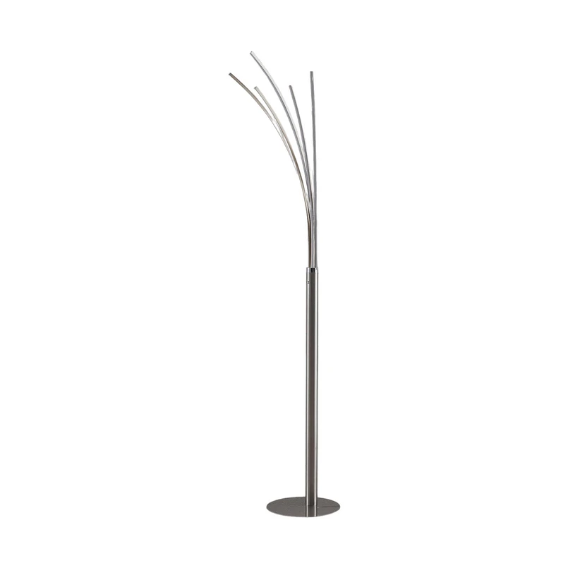 Boba LED Floor Lamp Nickel is a beautiful all-rounder for the living room. With its consistently modern design and beautiful light effect, the lamp is both a light source and a decoration in the interior at the same time. The lamp has a neutral colour scheme with a beautiful, shiny nickel finish that makes it easy to fit into the existing colour scheme. The frame is placed slightly off-centre in relation to the base, which emphasises the modern look. Instead of a lampshade, the lamp has five long light tails that curve in the same direction, creating a mesmerising waterfall of light when switched on. The built-in LEDs are mounted in the light tails and shine out along one side of each, creating a beautiful accent light while emphasising the beautiful design.
