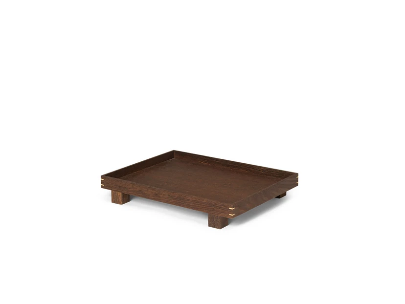 The Bon Wooden Tray Small Smoked Oak from Ferm Living is an elegant tray that combines Scandinavian design tradition with Japanese minimalism. This beautiful tray is made from natural solid oak and has a natural oak veneer base with an MDF core and polyacrylic coating, ensuring both durability and a stylish look. The wood is FSC® Mix certified, which means it comes from responsible forestry. The tray stands solidly on four wooden feet and is assembled with traditional, detailed wooden joints that emphasise the craftsmanship aspect. With its clean and simple aesthetic, this tray is perfect for displaying candles in the living room or organising your beauty products in the bathroom. Its versatility makes it an indispensable element in any home where functionality and aesthetics go hand in hand. Discover the entire Bon Wooden range and find the perfect solution for your home.