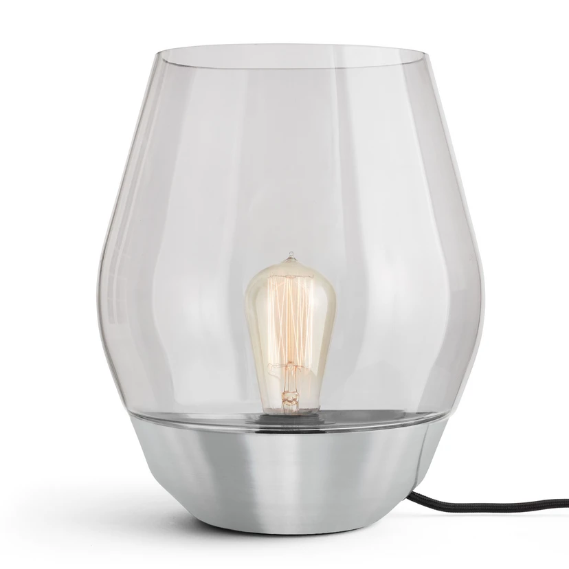 The Bowl table lamp almost makes it look as though there’s a fire in a small valley – the toned glass that surrounds the electric light bulb has a smoky aura. Thanks to this, the lamp produces a calm and comfortable light. Glass and metal contrast with one another in a way that reminds you of the old lanterns that inspired this modern lamp. Bowl is available in three variants.