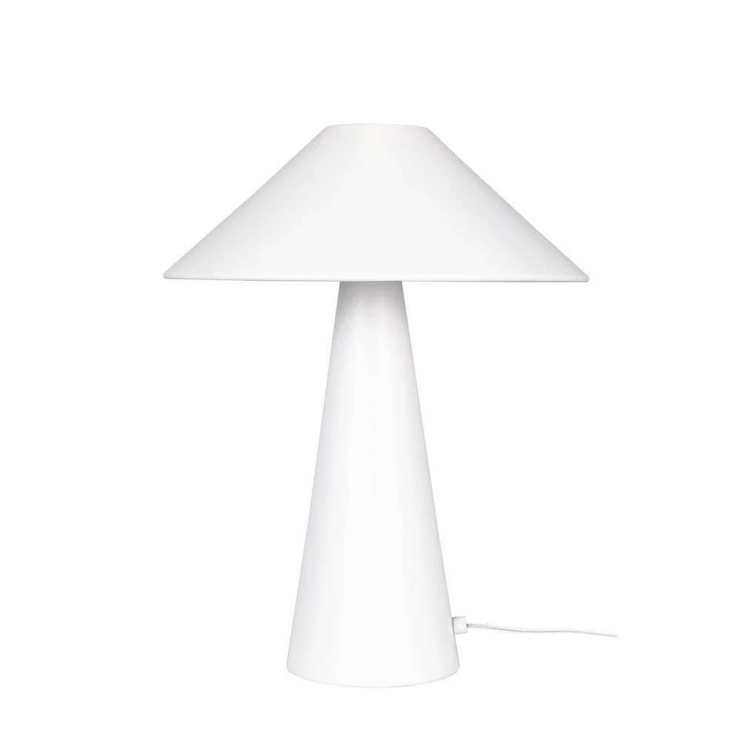 Cannes Table Lamp White is a simple and clean design that will suit all kinds of interior design styles. Cannes is a trendy table lamp with a conical design language in both the base and shade that makes it extra remarkable. The unique lampshade spreads a soft, pleasant and glare-free light in the immediate surroundings. You can place this beautiful table lamp on your desk, windowsill or bedside table, where it serves as both a source of lighting as well as a decorative element that is sure to catch people's attention. The lamp is made of lacquered metal and is available in a variety of beautiful colors, so you can choose the lamp that best matches your style.