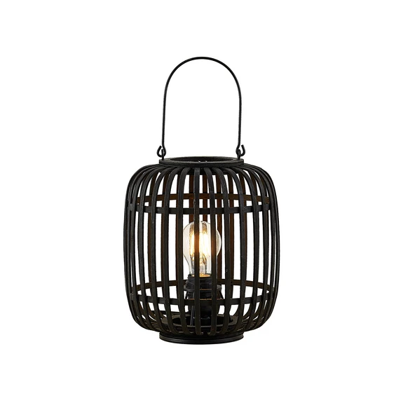 Canyana Table Lamp Black impresses with its beautiful cage design that puts an organic spin on the classic lantern lamp. The lamp follows the popular cage lamp trend but has replaced the industrial metal straps with wide rattan rods that create a globe-shaped construction that frames the light source inside. The light source is therefore partially visible and can therefore emit a clear and direct light through the wooden bars. At the same time, the bars prevent the light from being harsh and blinding, giving you the best of both worlds. The light source is visible through the bars and thus forms the centre of the design, which is why you can choose a decorative bulb model.