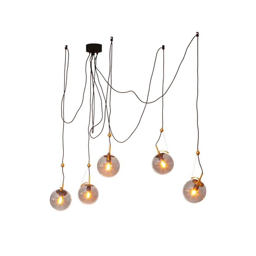 Carry 5 Pendant Light Grey is a stylish lamp model that offers both versatile functionality and a beautiful decorative element that adds modern flair to any interior. The lamp has a modern design where the lampshade is made of a glass sphere, giving the illusion of a free-floating light source.