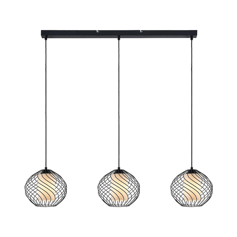 Cedrice Pendant Light Black/White is immediately recognisable by its characteristic cage lampshades, which have become very popular in lamp design. The cage shade has the advantage of providing a view of the interior of the lamp, creating a beautiful transparency. The metal strips are beautifully bent to form a whimsical pattern.