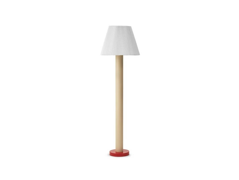 Cellu Floor lamp Sand is a design-oriented lighting model with a modern and playful expression that creates a stylish atmosphere but at the same time has an exciting optic that gives it its high recognition value. The lamp is part of a whole series consisting of table and floor lamps in several different colour combinations. Designed by Simon Legald for Normann Copenhagen, the Cellu series is a reinterpretation of the classic folded paper lampshade. The lampshade is made of polypropylene, which is much more durable and also allows efficient light emission from the lampshade itself into the room. The light can therefore shine both indirectly through the lampshade itself in a soft, uniform glow that complements the overall lighting and through the exit at the bottom of the lampshade in a direct light.