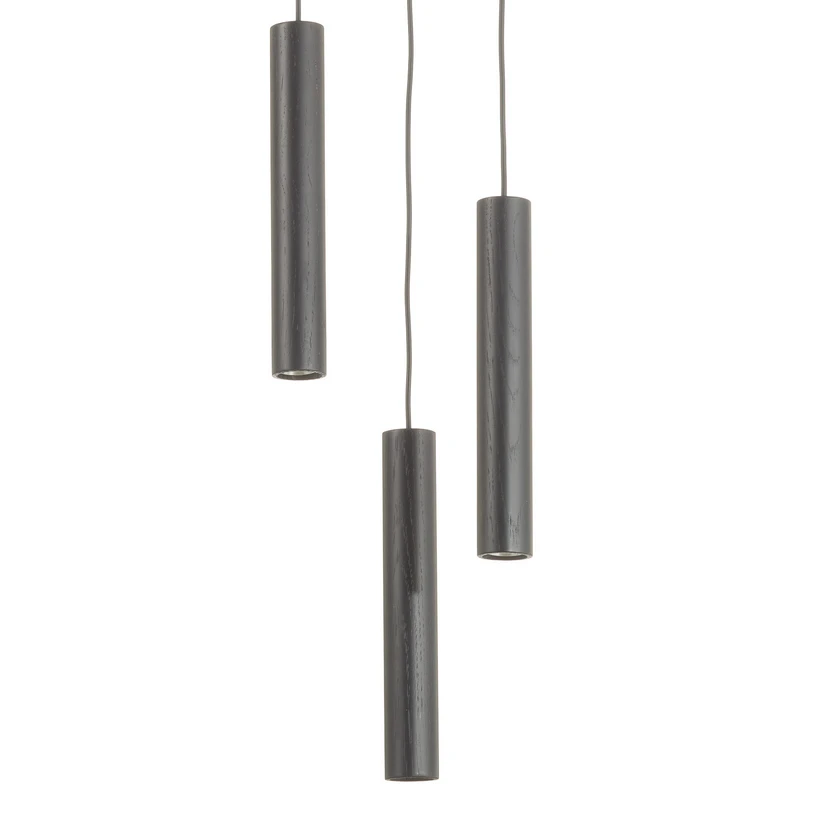 The Chimes Cluster 3 Pendant Light Black is designed with inspiration from the calm and Nordic atmosphere you find on a quiet walk in the forest. The solid oak is combined with an LED spotlight that provides a warm downward light over the dining or work table.