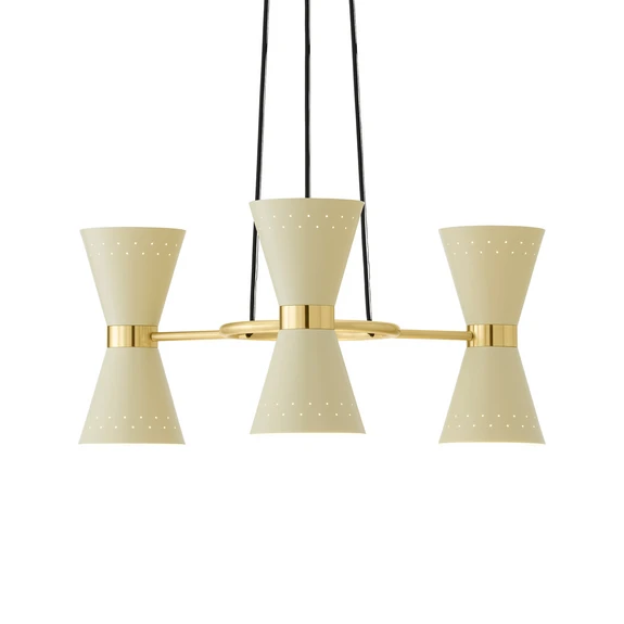 With a simple silhouette, the old Swedish design legend Alf Svensson created the beautiful Collector lamps. The small series, now re-released thanks to Danish company Menu, shares the same look across the collection: two conical lampshades, a brass belt and small perforations that gently let out light.