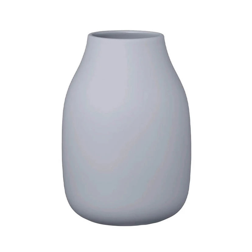 The Colora Vase L Colour Tradewinds from Blomus is an elegant flower planter that adds a touch of style to your home. This ceramic vase in a beautiful grey-blue shade is both functional and decorative. With a height of 20 cm and a diameter of 14 cm, it's ideal for displaying your favourite flowers or as a standalone piece of art on a sideboard or windowsill. The soft matte finish highlights the deep grey colour known as 'Peat' for a sophisticated look.