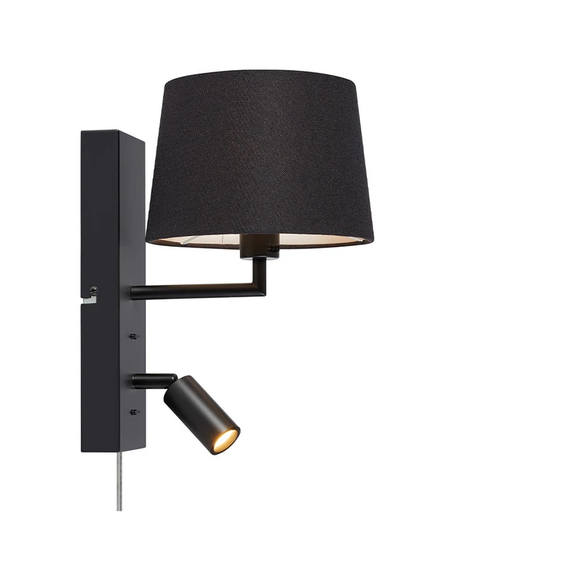 Como 2 Wall light Black from Markslöjd is the perfect addition to your home if you are looking for a stylish and functional wall light. This elegant wall light combines practical reading light with a cosy atmosphere, ideal for the bedroom, living room or reading corner. The black metal base and adjustable spotlight make it easy to direct the light exactly where you need it, while the larger lampshade in black textile spreads a soft and cosy light that creates a welcoming atmosphere.