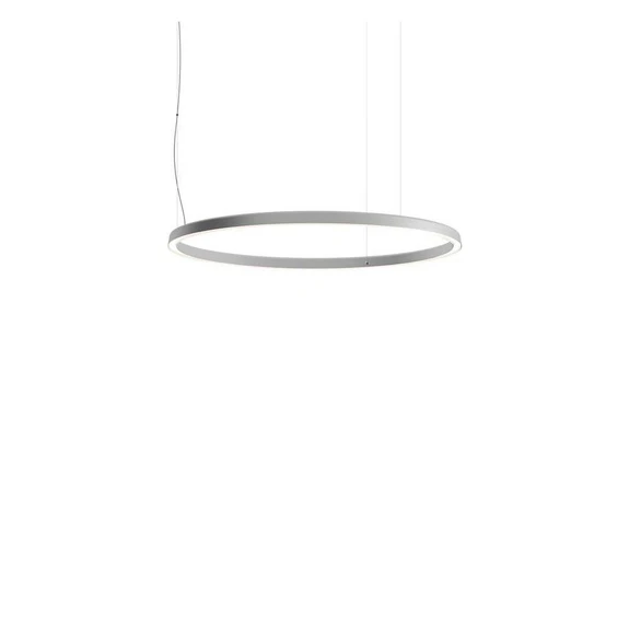 The almost-floating circle has a built-in LED and can be mounted to face upward or downward, so can use the lamp for an effective direct downlight or a soft indirect illumination of the whole room.