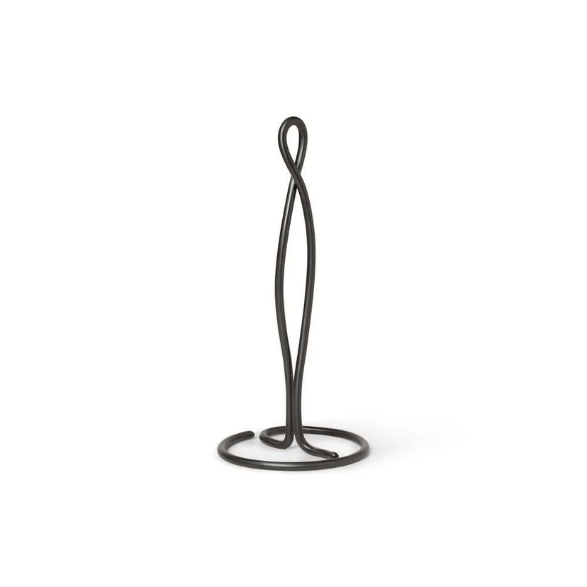 The Curvature Paper Towel Holder Black Brass is made of solid brass and, like the hooks in the same series, is hand-bent and hand-shaped. The exclusive material gives the paper towel holder elegance and contrasts with the playful and almost fun expression that Ferm Living works with.
