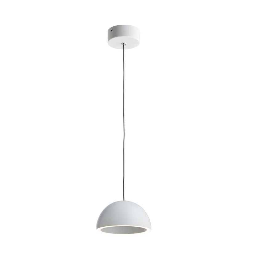 The Curve Pendant White from Loom Design is the perfect addition to your home or office. This elegant pendant light, made of aluminium, has a beautiful white finish for a clean and minimalist look. With its hemispherical shape and compact size of 7.5 cm in height and 14 cm in diameter, it fits easily into different rooms and interior styles. The integrated LED lighting, discreetly placed along the edge, ensures even and comfortable lighting, ideal for kitchens, dining rooms, offices and meeting rooms. Curve's timeless design and neutral colour make it versatile and easy to combine with other elements in your interior. Whether you prefer a modern or classic style, this pendant light will add a stylish and functional element to your space. Make your home or workplace brighter and more inviting with the Curve Pendant White.