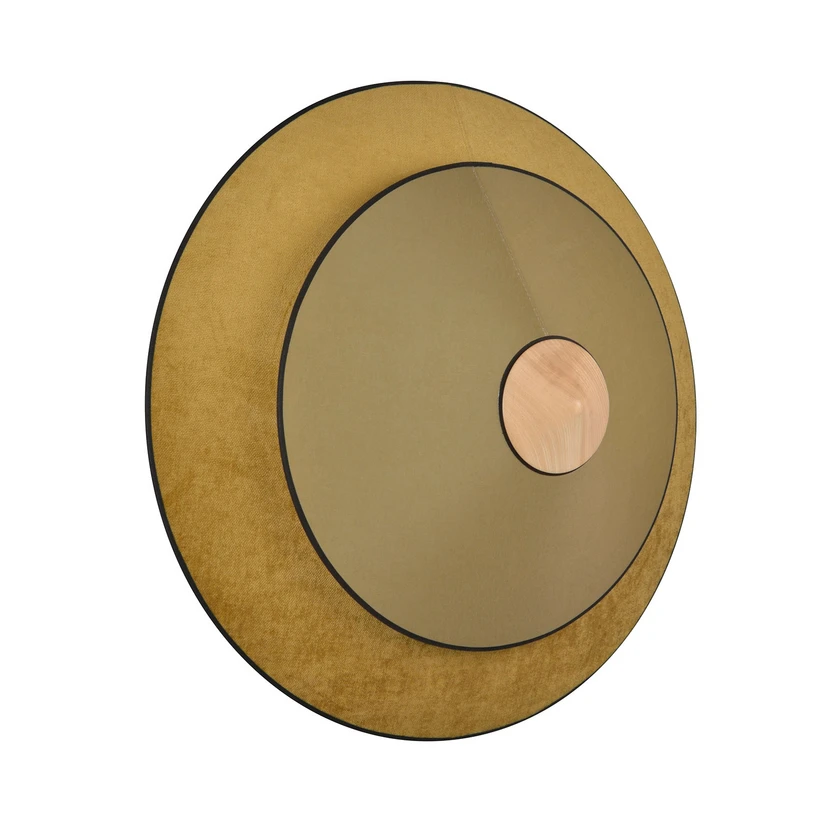 Cymbal Wall Lamp S Bronze is a little piece of music in the form of a lamp. The circular elements that make up the Cymbal Wall Lamp are made of velvet, hemp, and wood. The result is a lovely matte and natural expression with a soft and cosy light effect.