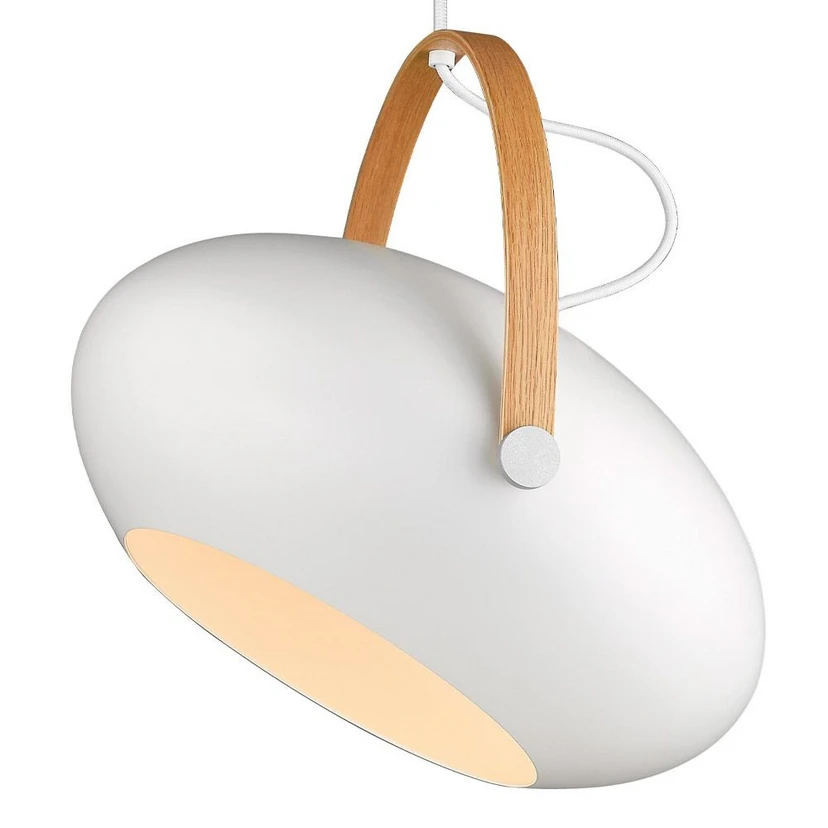 D.C Pendant Light Ø40 White/Oak is solidly constructed with an unbroken focus on details and materials - Built up in metal, wood and aluminium screws, Michael Waltersdorff has created a super modern lamp with a timeless expression. The stunningly beautiful metal head can be angled on the wooden frame and helps to create exactly the expression you want at the given moment.