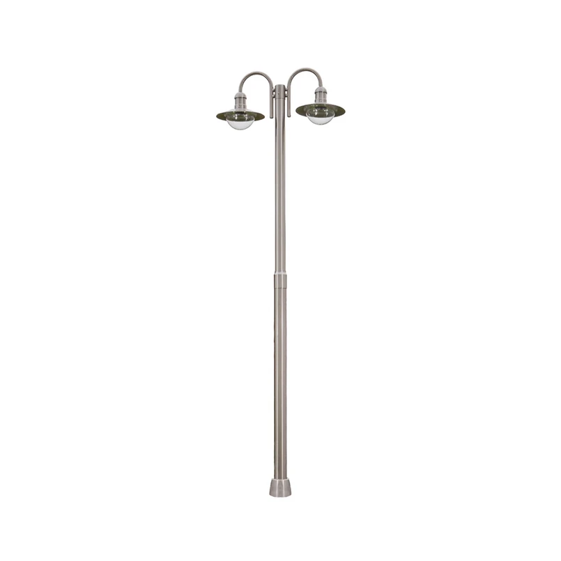 The Damion 2 Outdoor Park Light Stainless Steel is a practical and decorative addition to outdoor lighting. The slim frame, the shiny stainless steel surface, the round arches at the top and the quirky hat design that shades the transparent lampshade - all give the lamp a unique, almost nostalgic aesthetic that adds a beautiful touch to the surroundings both on and off.