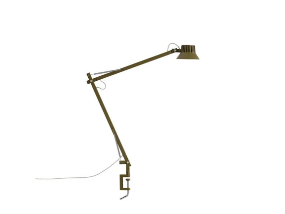 Dedicate Table Lamp w/Clamp L2 Brown Green is a visionary lighting collection by Danish designer Thomas Bentzen from 2024. The lighting collection, which includes table and wall lights in several different versions and colour variants, is a showcase of innovative craftsmanship where every detail of form and function has been thought through to perfection. All lights in the Dedicate series are characterised by a function-oriented design with an LED light source built into the lamp head and an articulated frame for adjusting the position and direction of the light. The table lamps in the series come with a traditional base, with a clamp base and with a screw function for mounting between tables.