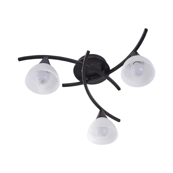 The Della 3 Ceiling Light Black/Opal has a modern look but is also characterised by a graceful frame with elegant curves and arches that give the lamp a romantic look. The design is a harmonious union of metal and glass. The lampshades have a special alabaster look with an opal white surface that allows the light to penetrate. The light shines out not only through the wide light outlets at the bottom of each lampshade but also through the shade glass itself, creating a beautiful 360-degree illumination that complements the direct downlight and creates a harmonious overall light pattern. The ceiling light works well as ambient lighting in smaller rooms such as the living room, hallway, corridor or bedroom.