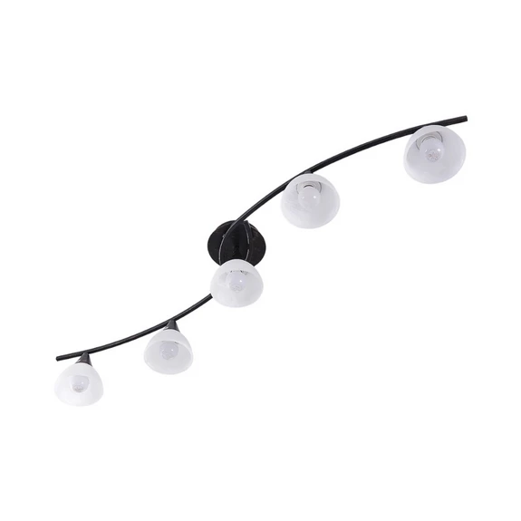 The Della 5 Ceiling Light Black/Opal has a modern look but is also characterised by a graceful frame with elegant curves and arches that give the lamp a romantic look. The design is a harmonious union of metal and glass. The lampshades have a special alabaster look with an opal white surface that allows the light to penetrate. The light shines out not only through the wide light outlets at the bottom of each lampshade but also through the shade glass itself, creating a beautiful 360-degree illumination that complements the direct downlight and creates a harmonious overall light pattern. The ceiling light works well as ambient lighting in smaller rooms such as the living room, hallway, corridor or bedroom.