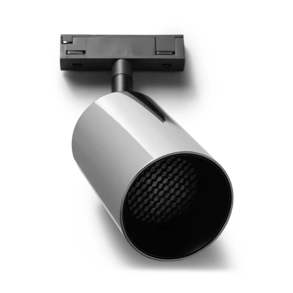 Designline Tube Pro Spot Chrome from Antidark is the perfect solution for those looking for elegant and functional lighting. This exclusive spotlight from our popular Designline track system is made of durable aluminium and has a stylish chrome finish that fits into any modern home. With its minimalist design and great flexibility, you can easily customise the light to suit your needs. The spotlight is easily mounted on the Designline rail and can be adjusted in the desired direction, making it ideal for highlighting wall art or other interior details. The included honeycomb filter reduces glare, while the additional gold brass front ring allows you to change the look to your liking. The light source is interchangeable, so you can choose the GU10 light bulb that best suits your space. Remember to tighten the screw when the spotlight is in place..
