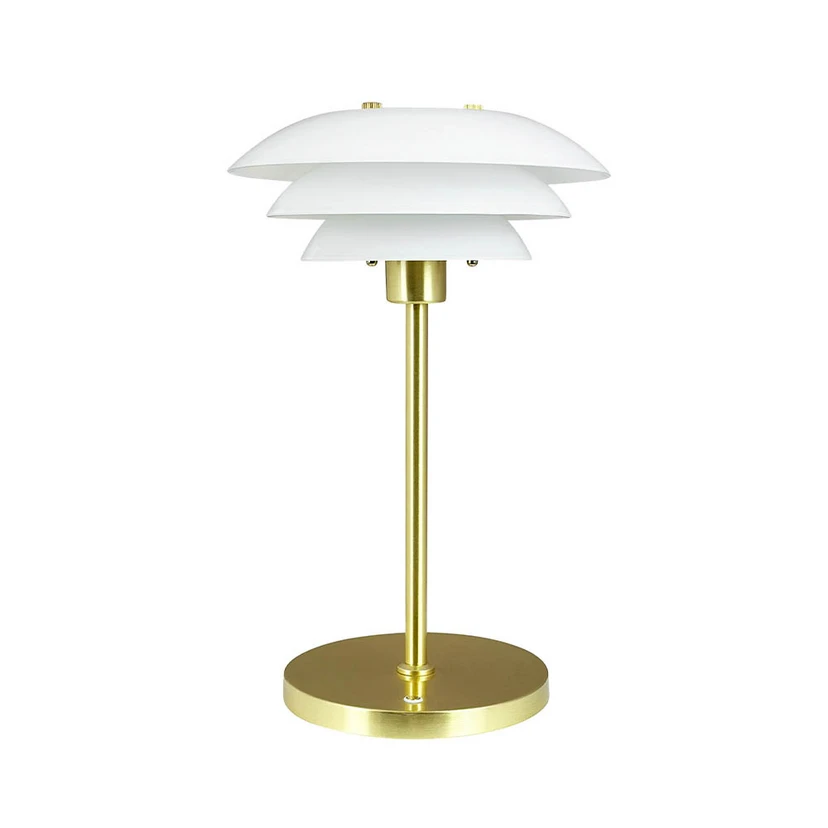 The DL20 Portable Table Lamp Opal/Brass from DybergLarsen is an elegant example of functional Danish design. This table lamp combines opal glass and brass for a timeless and stylish look that fits perfectly into any home. With a height of 30 cm and a diameter of 20 cm, it is ideal as a bedside lamp, desk lamp or to create cosiness in a corner.